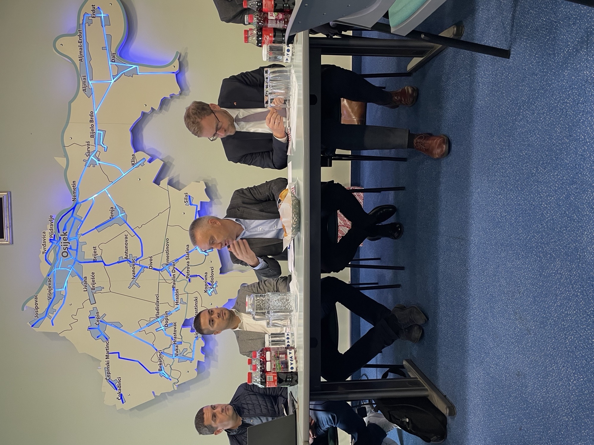 Delegacija austrijskih gospodarstvenika, predvođena gospodinom Gerhardom Schlattlom , Direktorom / Savjetnikom za trgovinske odnose ADVANTAGE AUSTRIA Zagreb, posjetila je Pogon za preradu vode osječkog vodovoda. Direktor Društva VODOVOD-OSIJEK d.o.o., gospodin Marko Eljuga, upoznao ih je sa procesima proizvodnje, prerade i distribucije pitke vode, te odvodnjom i pročišćavanjem otpadnih voda. Austrijska delegacija iskoristila je posjet za predstavljanje svojih poslovnih subjekata, koji su vezani za vodno-komunalni sektor.